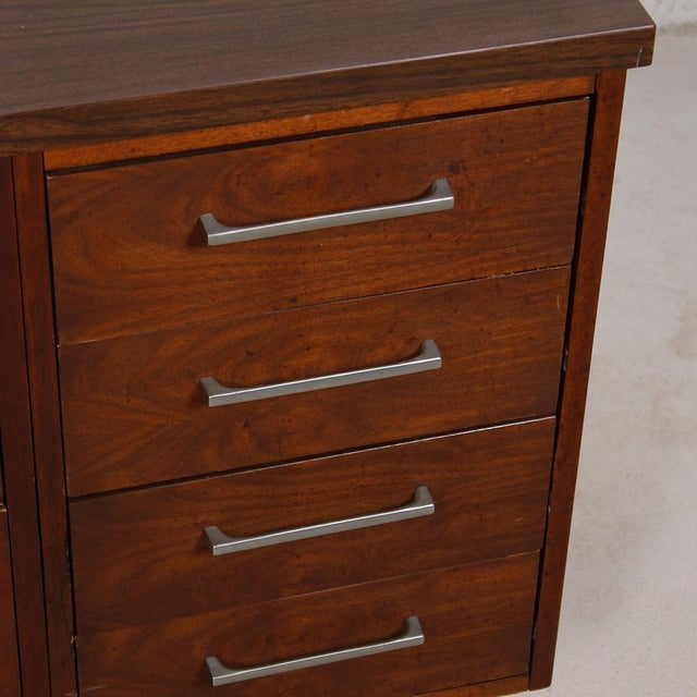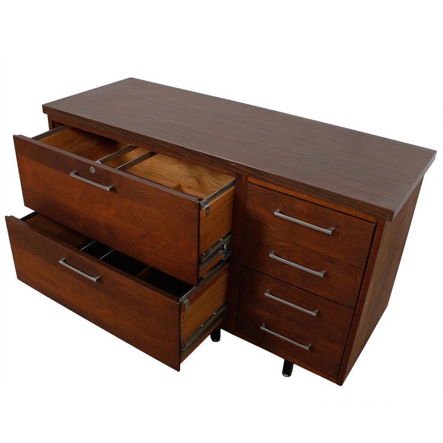 While modern filing cabinets come in a variety of shapes and sizes, there are two basic types: Modern walnut desk with floating shelves. Just check out this one. Mid century modern walnut kimball file cabinet. The unit has two small drawers and two larger, filing drawers.